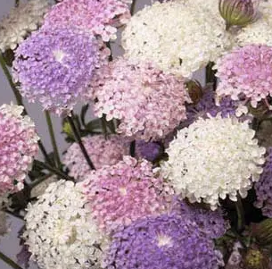 Store, sarte paraplylignende blomsterskærme i lys lavendelblå, rosa hvide farever på høje, velforgrenede stængler. Busket og let vækstform, udsøgt sammen med andre planter i blomsterbedet, og fremragende som snitblomst.